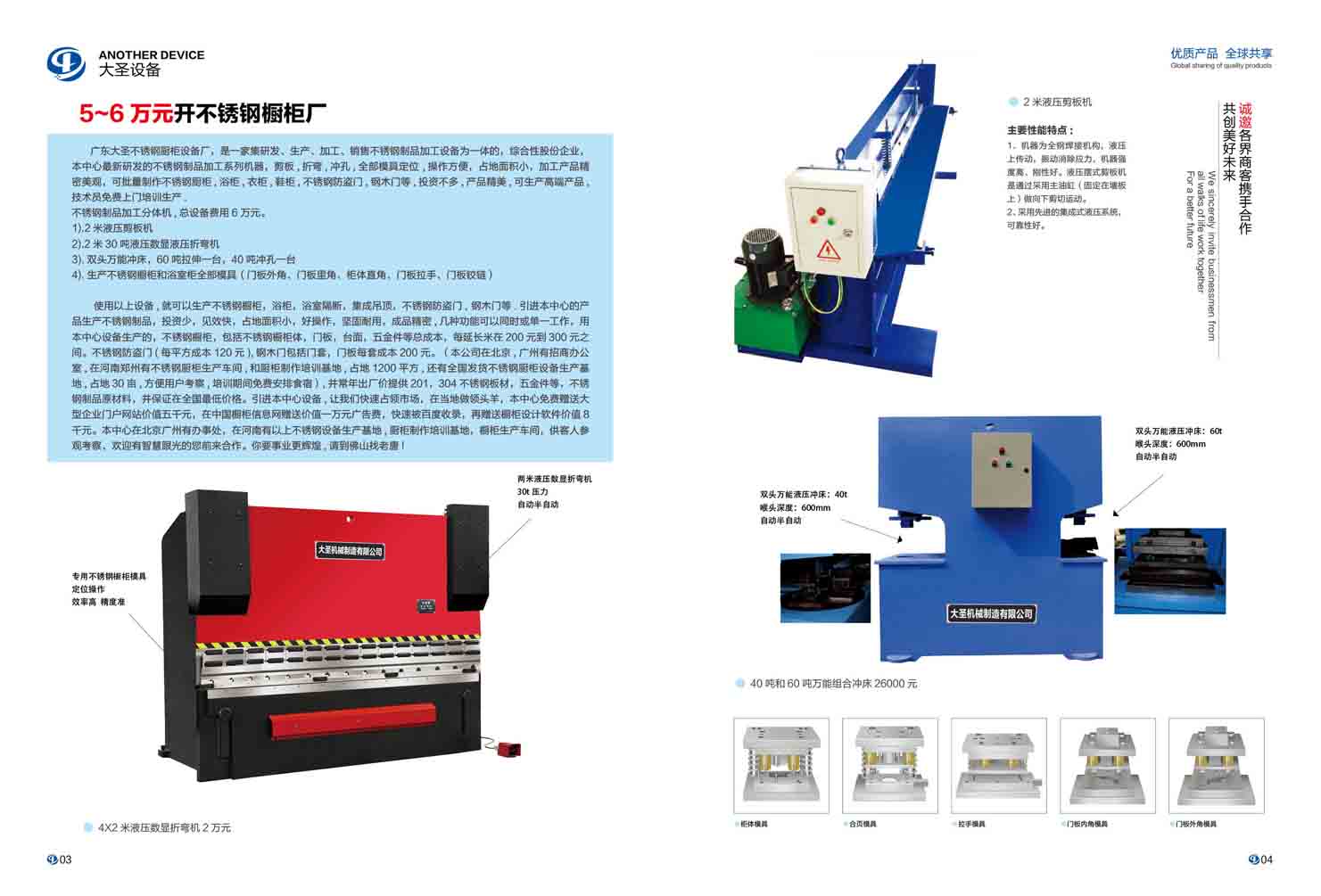 六萬(wàn)元開不銹鋼櫥柜廠,剪板機(jī),折彎,機(jī)雙頭自動(dòng)沖床全部模具